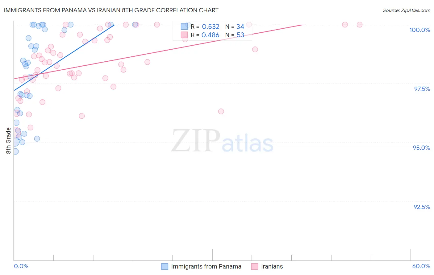Immigrants from Panama vs Iranian 8th Grade Correlation Chart