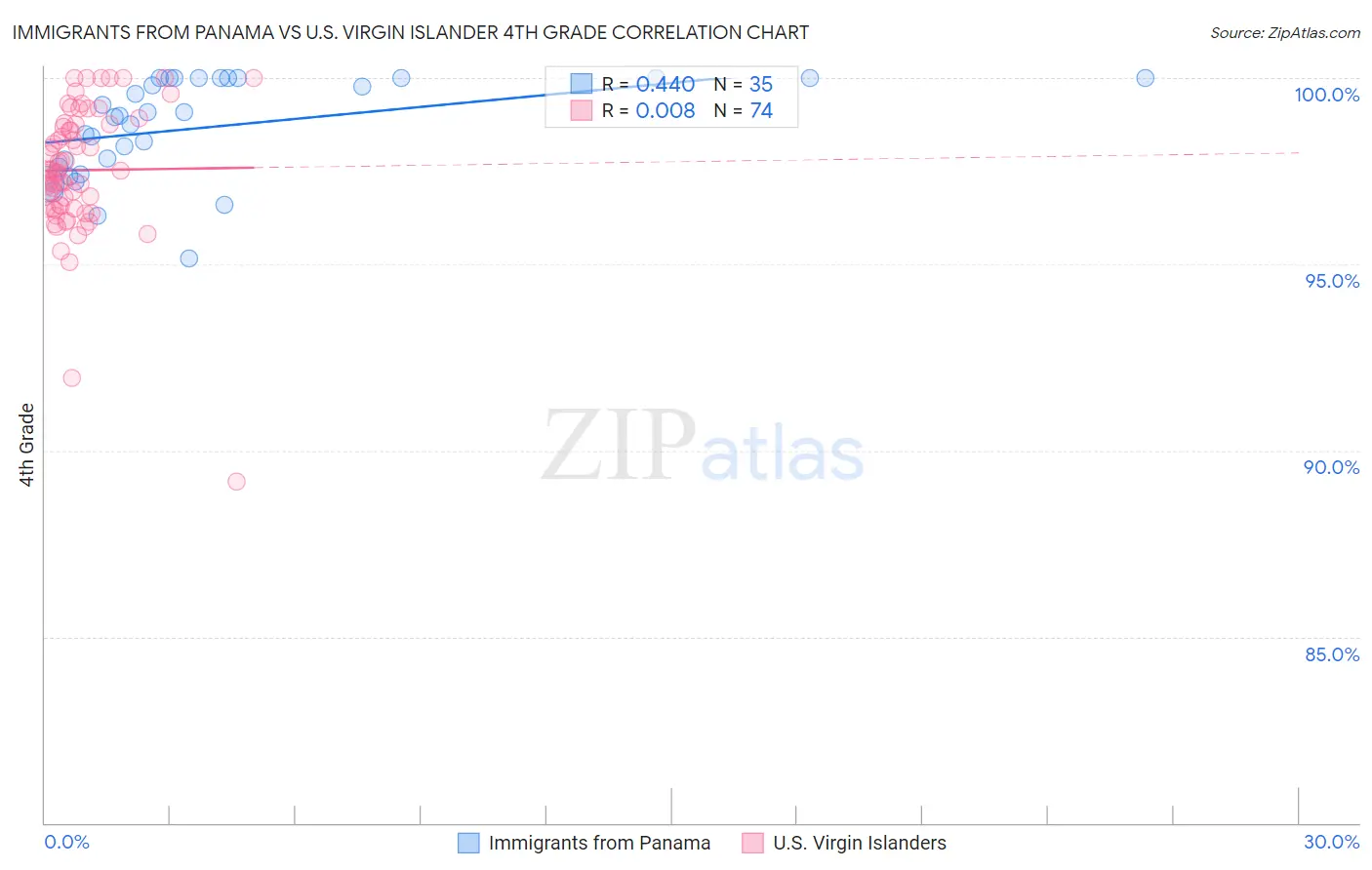 Immigrants from Panama vs U.S. Virgin Islander 4th Grade Correlation Chart
