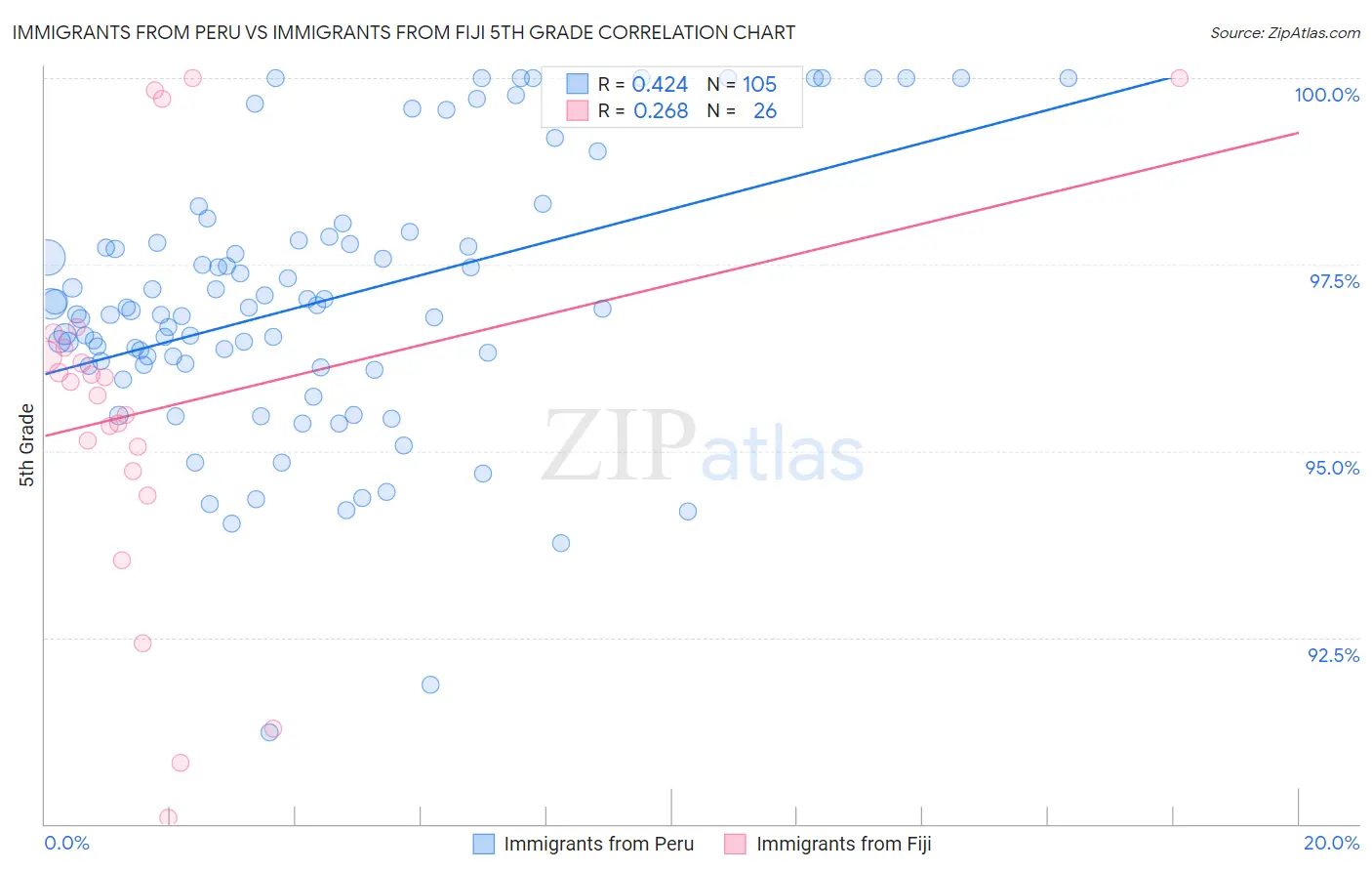 Immigrants from Peru vs Immigrants from Fiji 5th Grade Correlation Chart