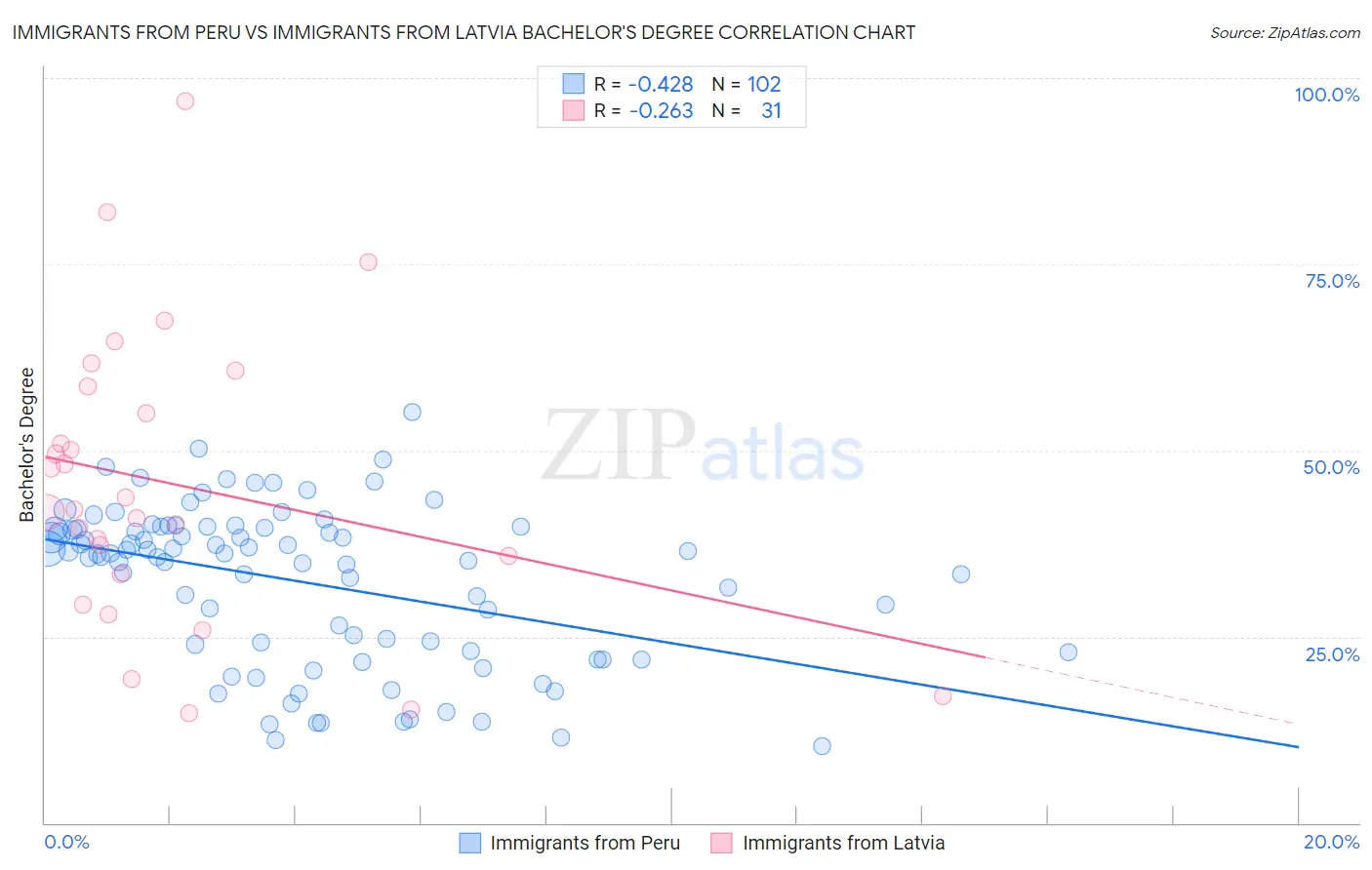 Immigrants from Peru vs Immigrants from Latvia Bachelor's Degree Correlation Chart