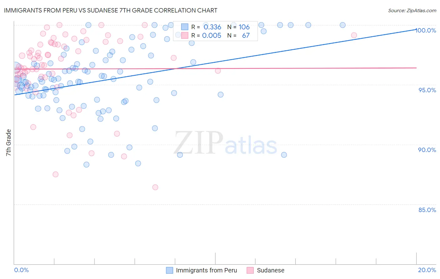 Immigrants from Peru vs Sudanese 7th Grade Correlation Chart