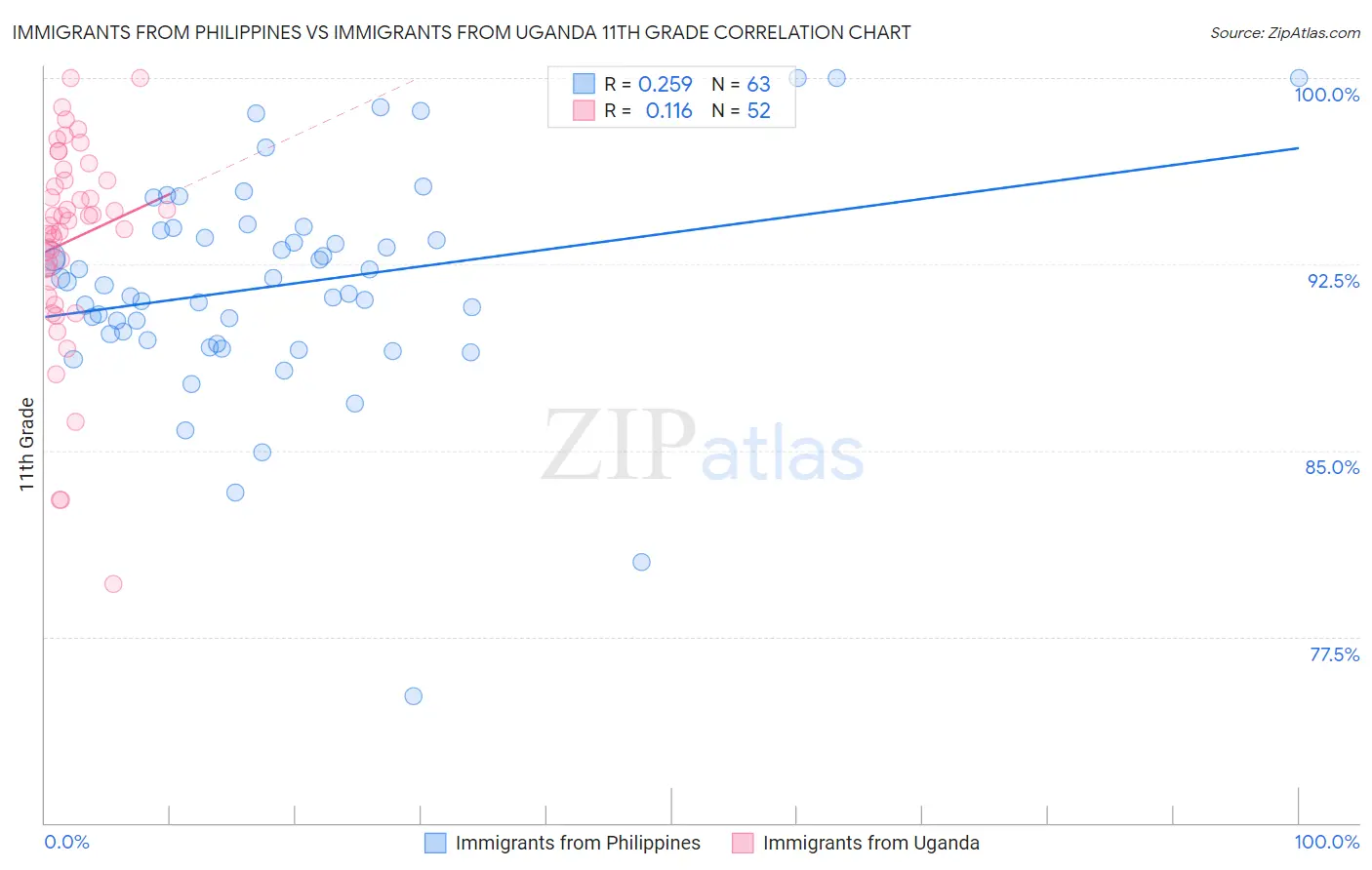Immigrants from Philippines vs Immigrants from Uganda 11th Grade Correlation Chart