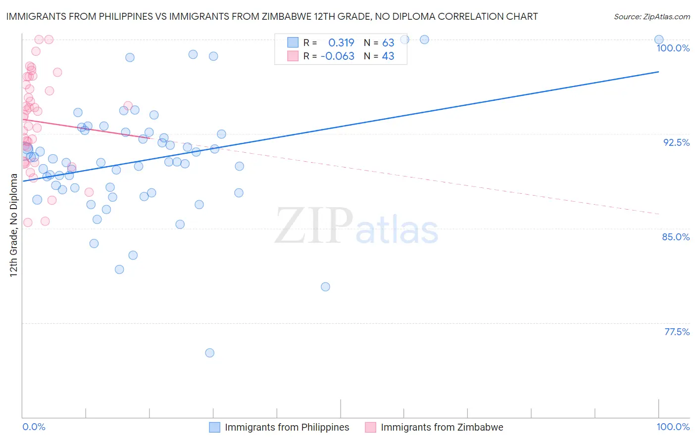 Immigrants from Philippines vs Immigrants from Zimbabwe 12th Grade, No Diploma Correlation Chart