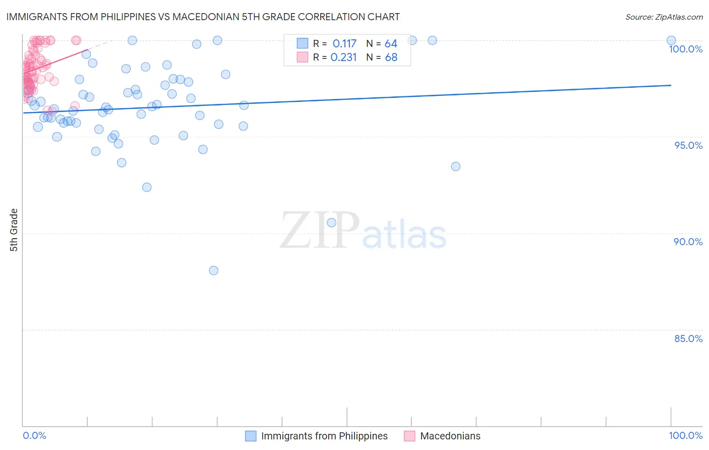Immigrants from Philippines vs Macedonian 5th Grade Correlation Chart