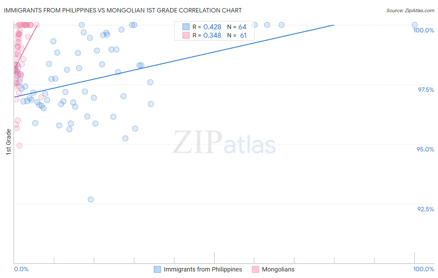 Immigrants from Philippines vs Mongolian 1st Grade Correlation Chart