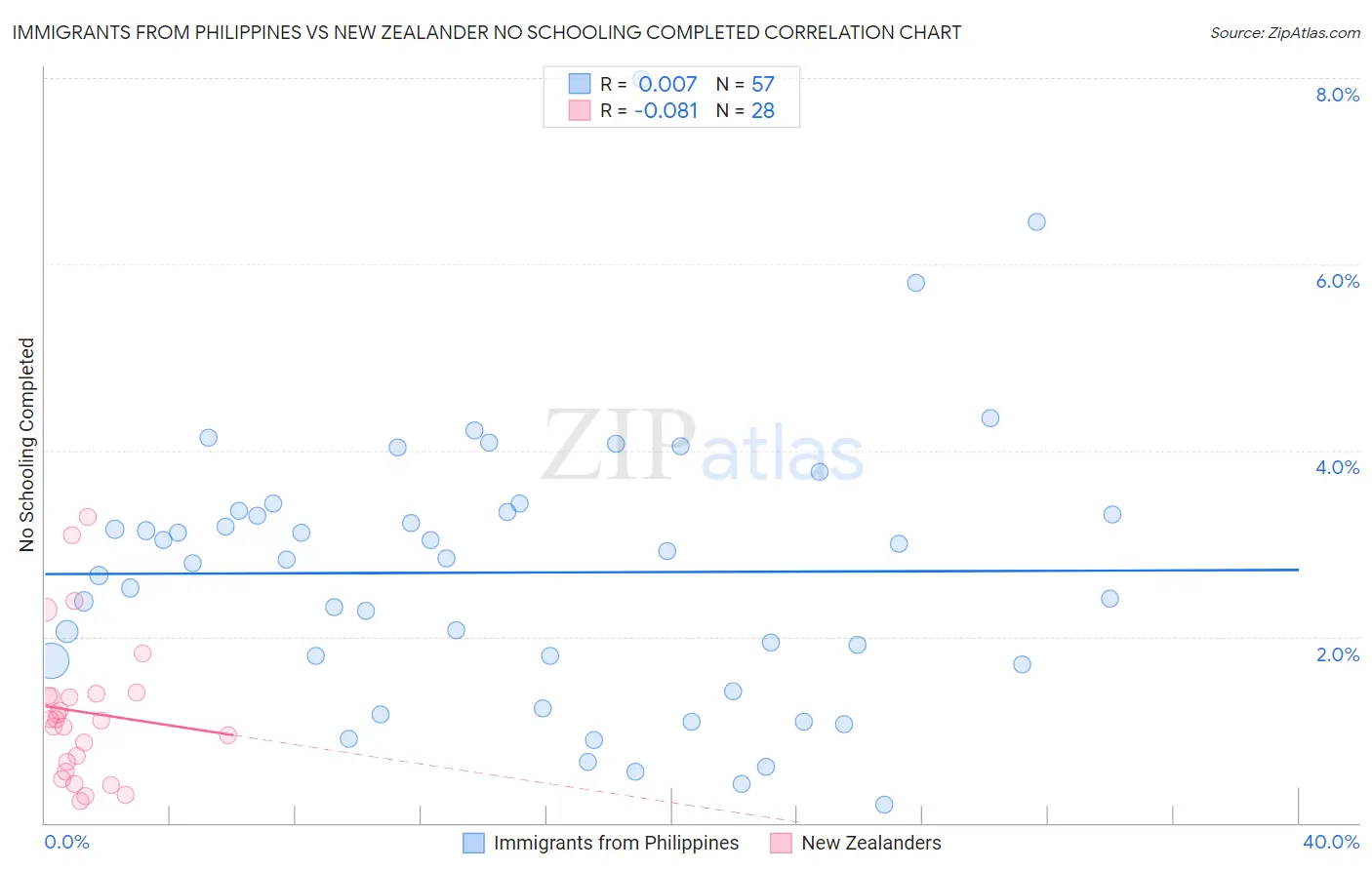 Immigrants from Philippines vs New Zealander No Schooling Completed
