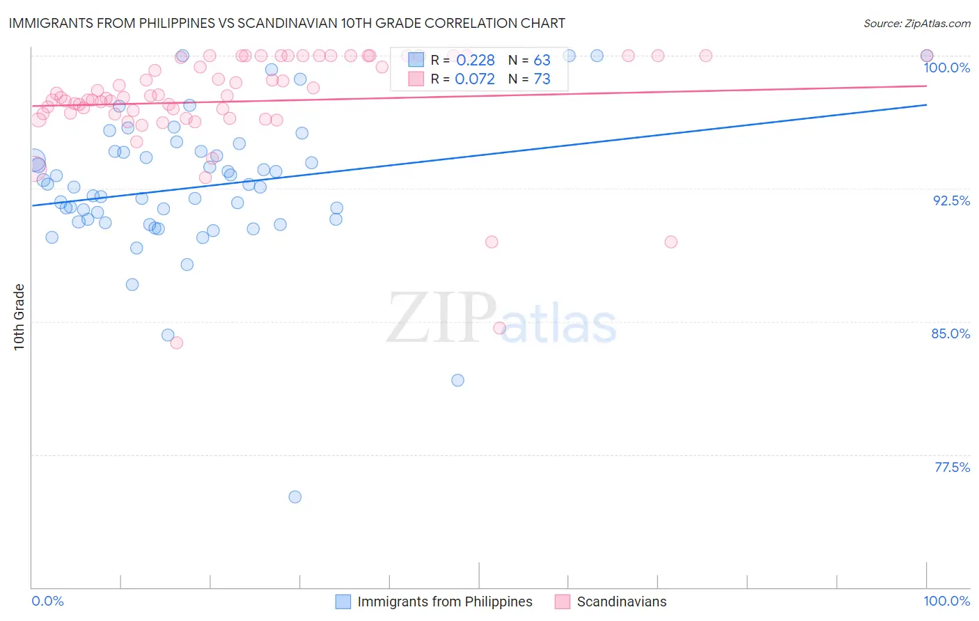 Immigrants from Philippines vs Scandinavian 10th Grade Correlation Chart