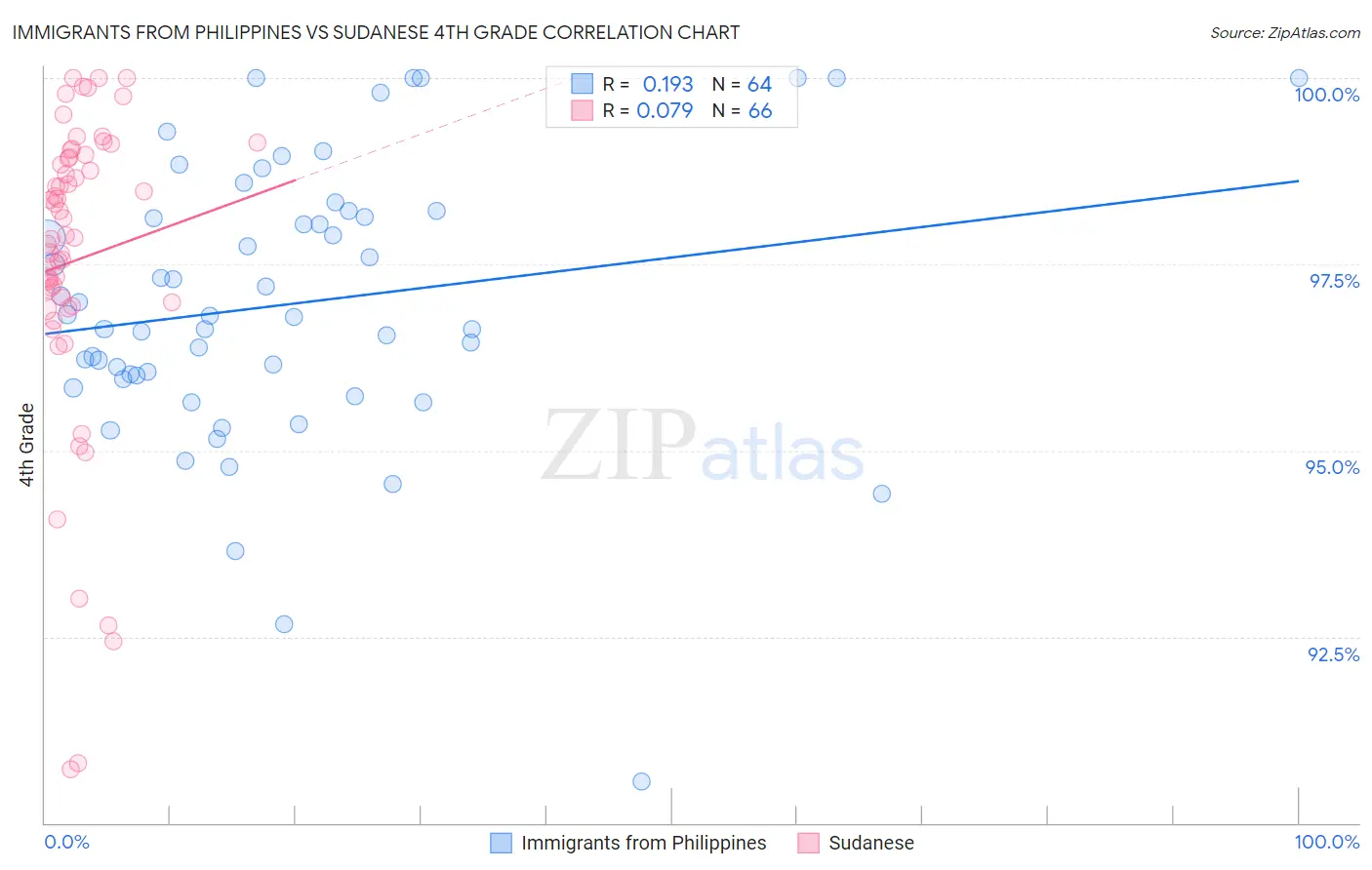 Immigrants from Philippines vs Sudanese 4th Grade Correlation Chart