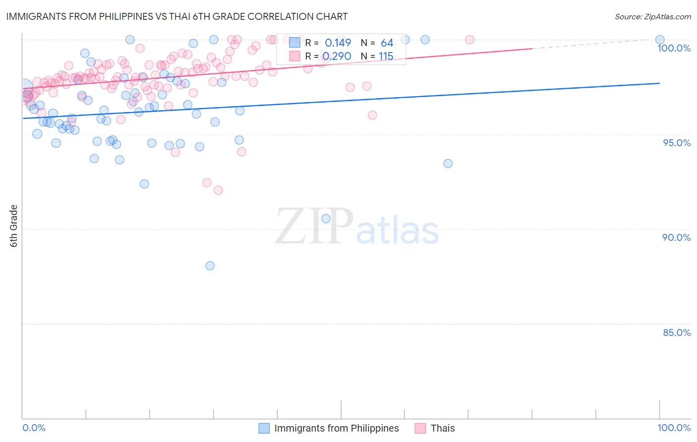 Immigrants from Philippines vs Thai 6th Grade Correlation Chart