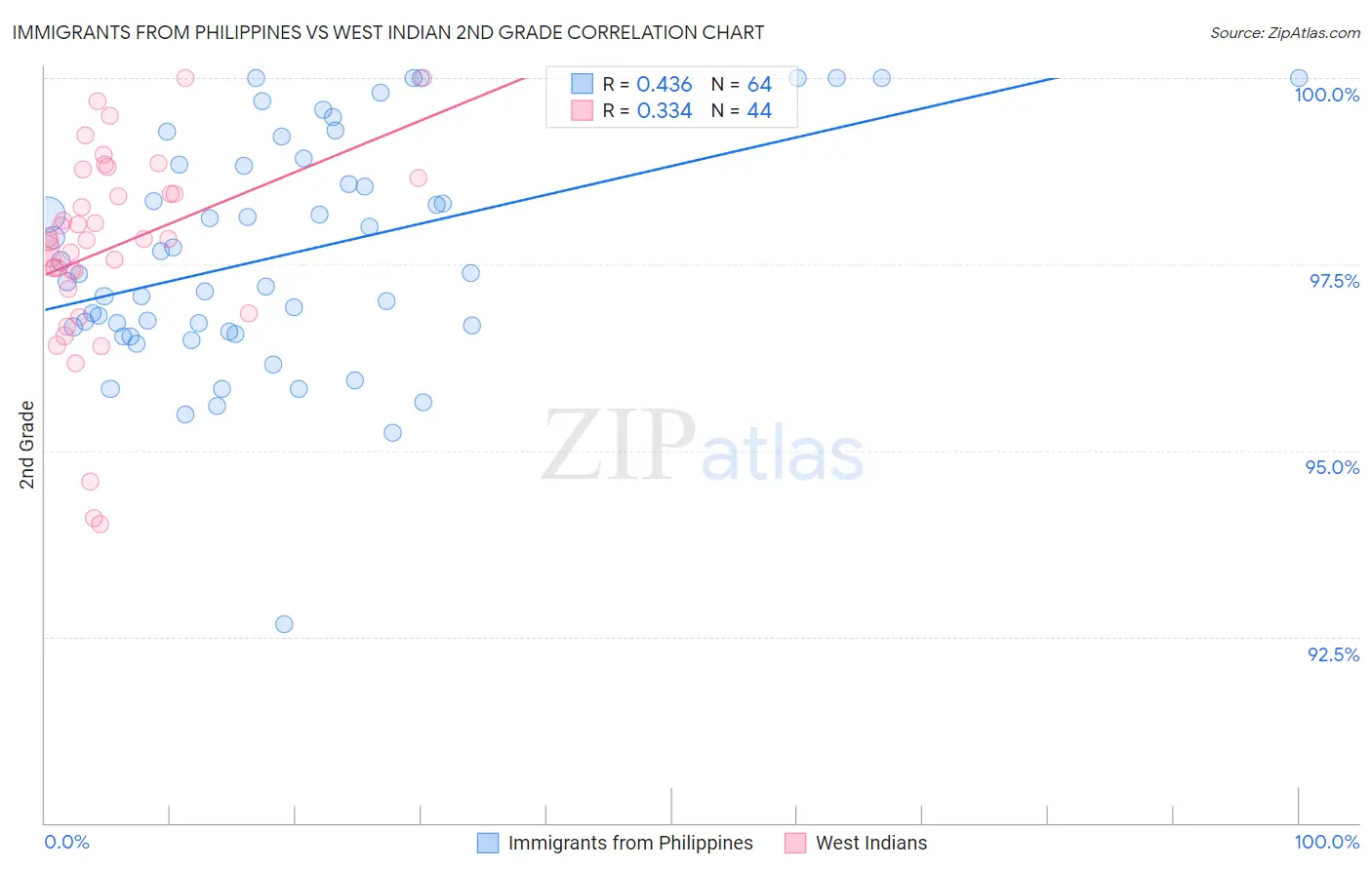 Immigrants from Philippines vs West Indian 2nd Grade Correlation Chart
