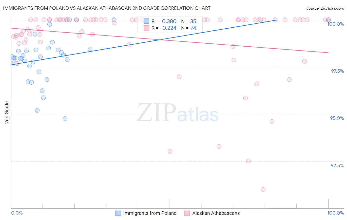 Immigrants from Poland vs Alaskan Athabascan 2nd Grade Correlation Chart