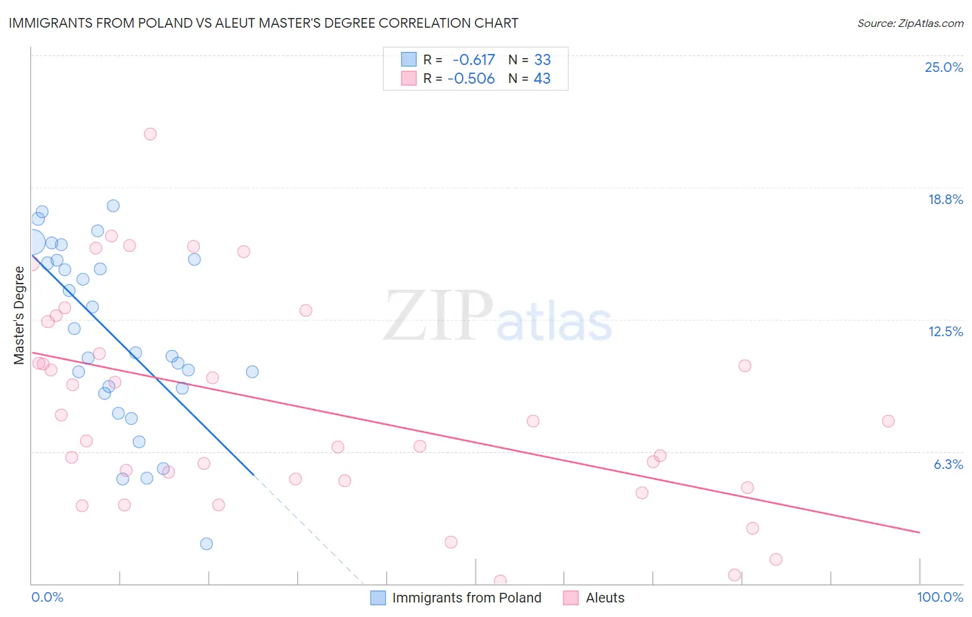Immigrants from Poland vs Aleut Master's Degree Correlation Chart