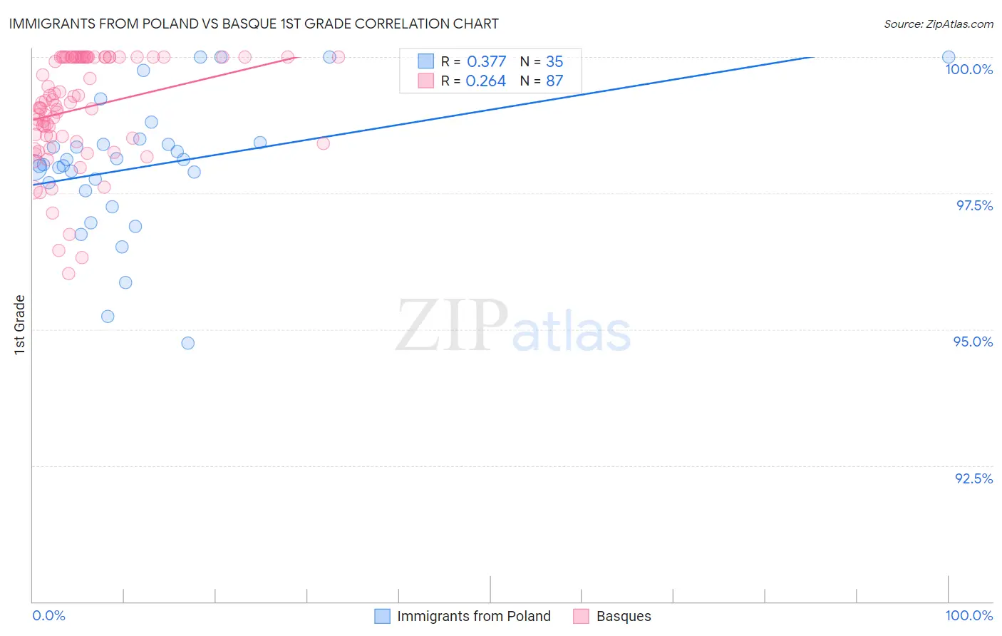 Immigrants from Poland vs Basque 1st Grade Correlation Chart