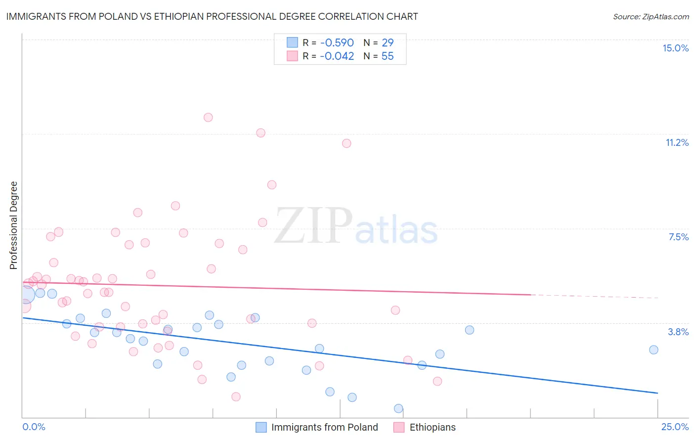 Immigrants from Poland vs Ethiopian Professional Degree Correlation Chart