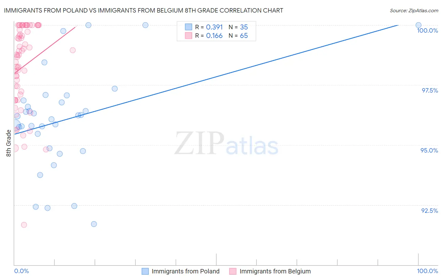 Immigrants from Poland vs Immigrants from Belgium 8th Grade Correlation Chart