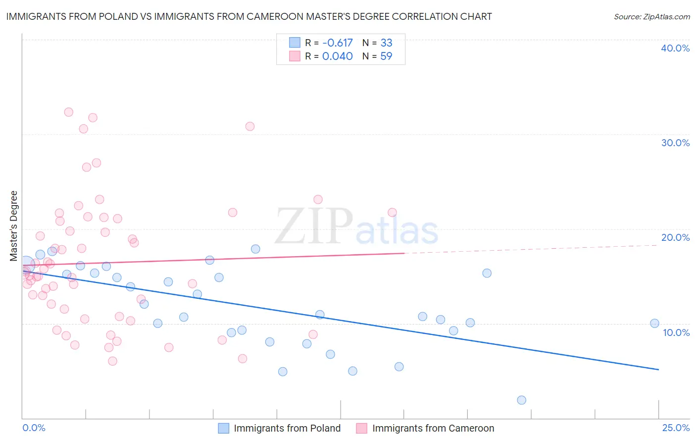 Immigrants from Poland vs Immigrants from Cameroon Master's Degree Correlation Chart