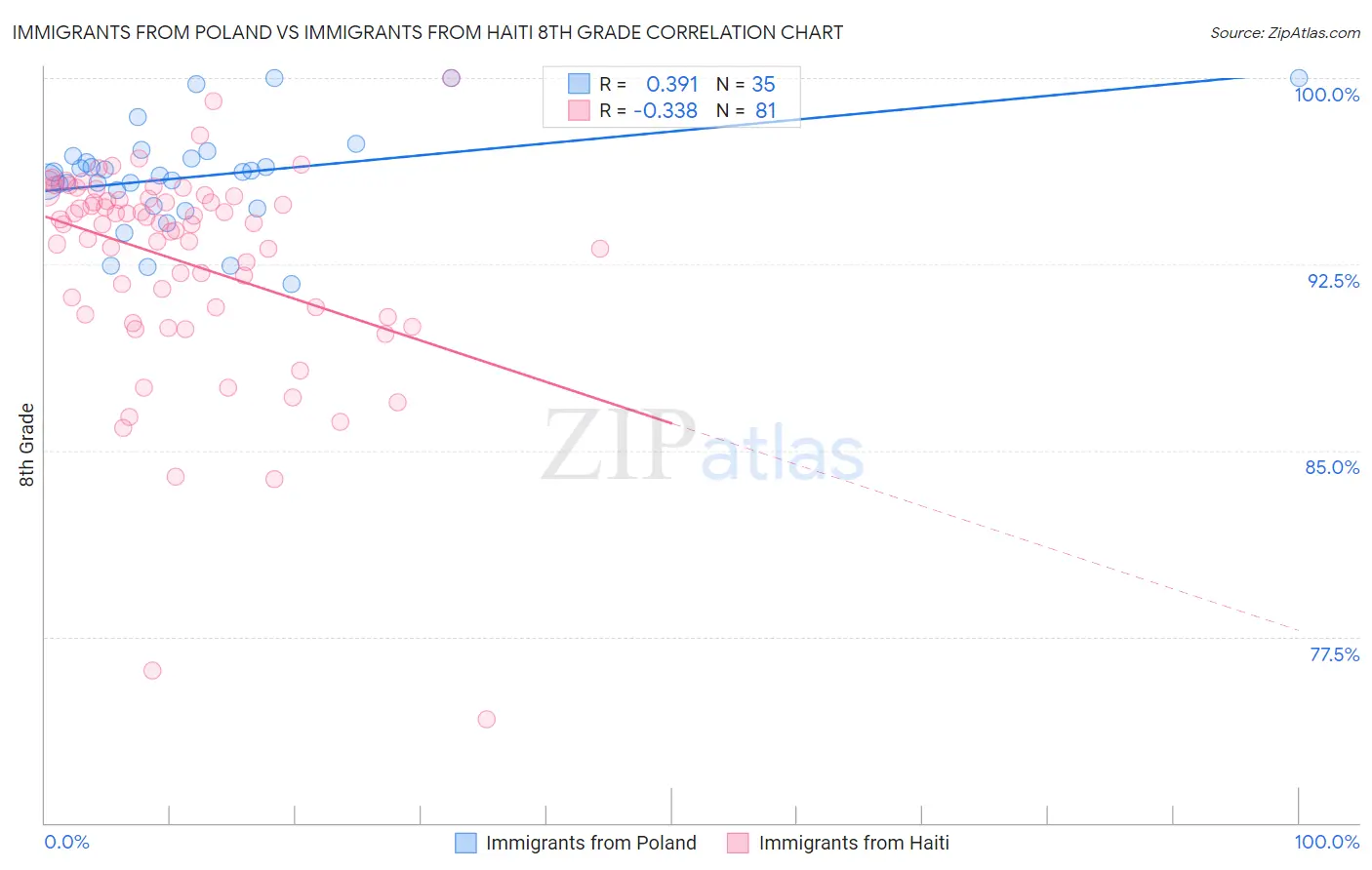Immigrants from Poland vs Immigrants from Haiti 8th Grade Correlation Chart