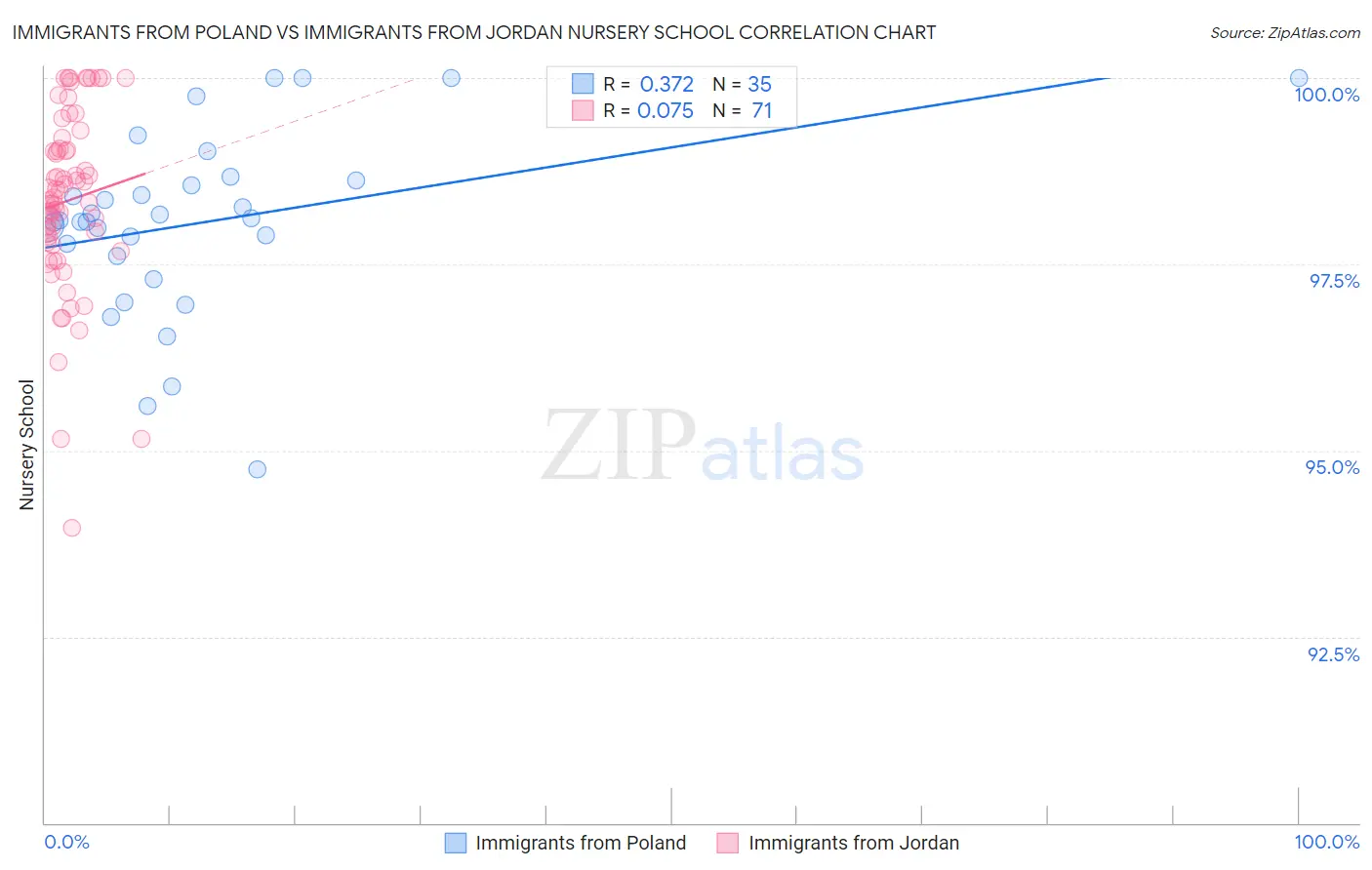 Immigrants from Poland vs Immigrants from Jordan Nursery School Correlation Chart