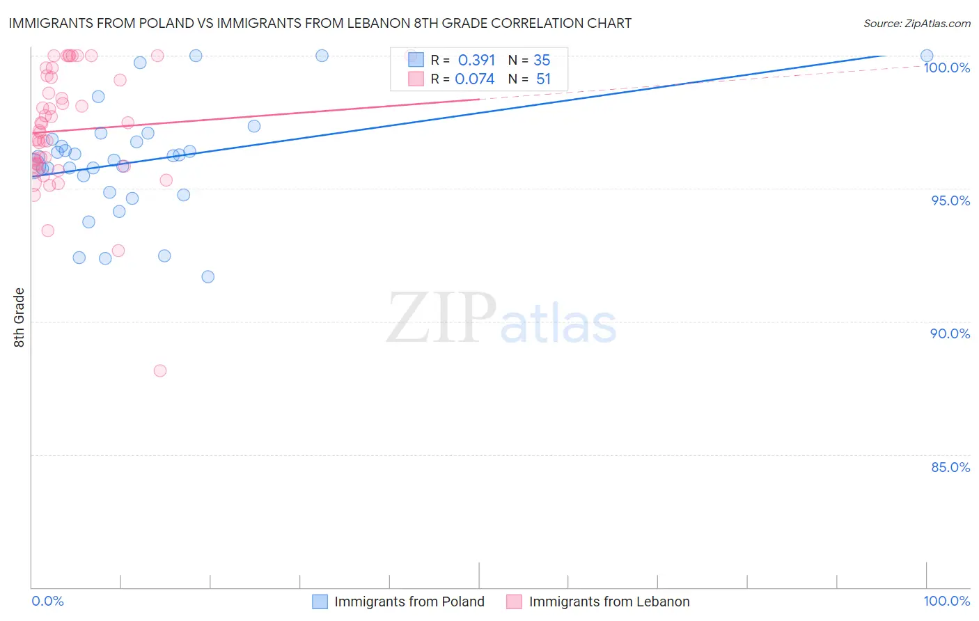 Immigrants from Poland vs Immigrants from Lebanon 8th Grade Correlation Chart