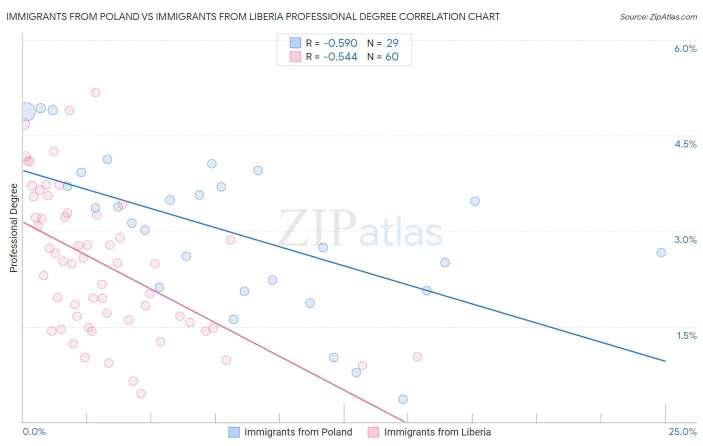 Immigrants from Poland vs Immigrants from Liberia Professional Degree