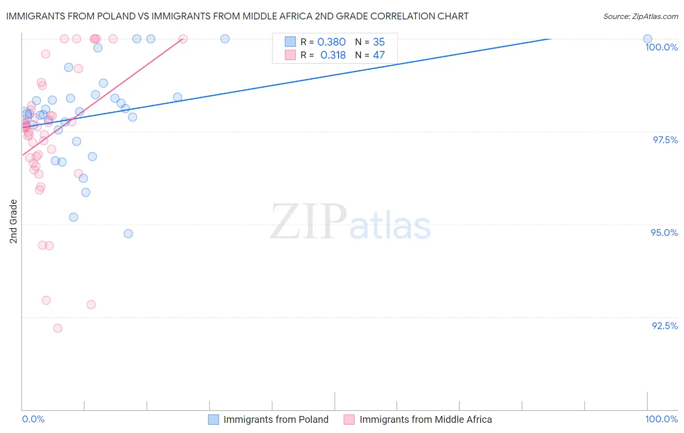 Immigrants from Poland vs Immigrants from Middle Africa 2nd Grade Correlation Chart