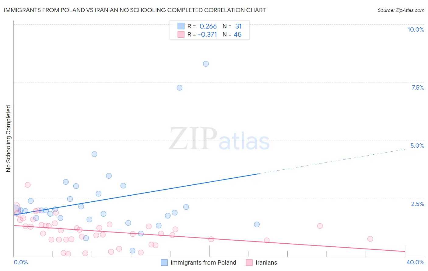 Immigrants from Poland vs Iranian No Schooling Completed Correlation Chart