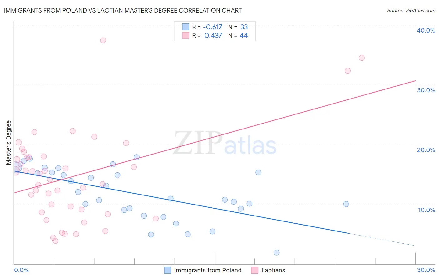 Immigrants from Poland vs Laotian Master's Degree Correlation Chart
