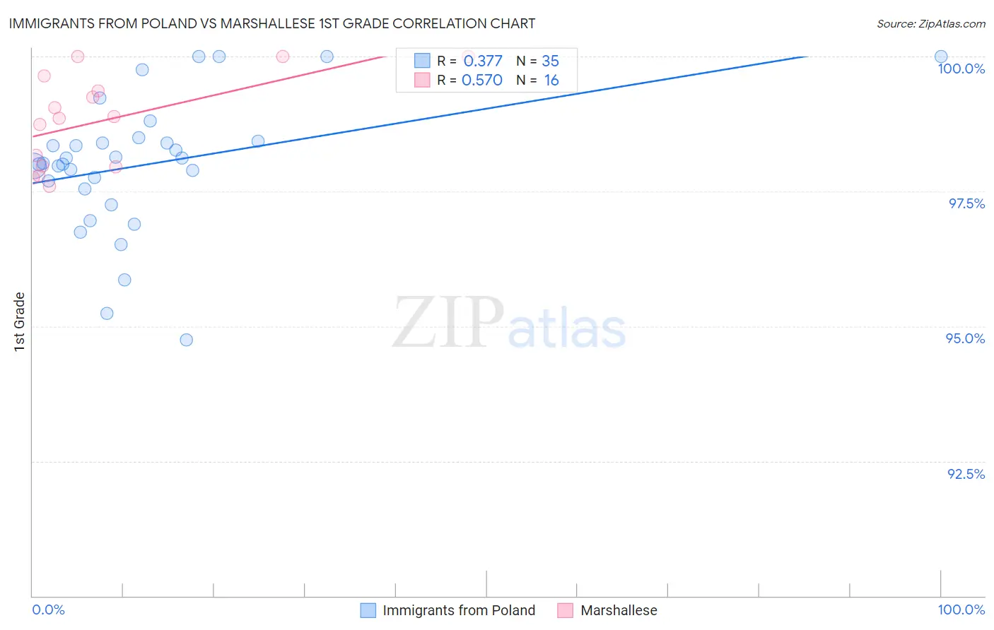 Immigrants from Poland vs Marshallese 1st Grade Correlation Chart