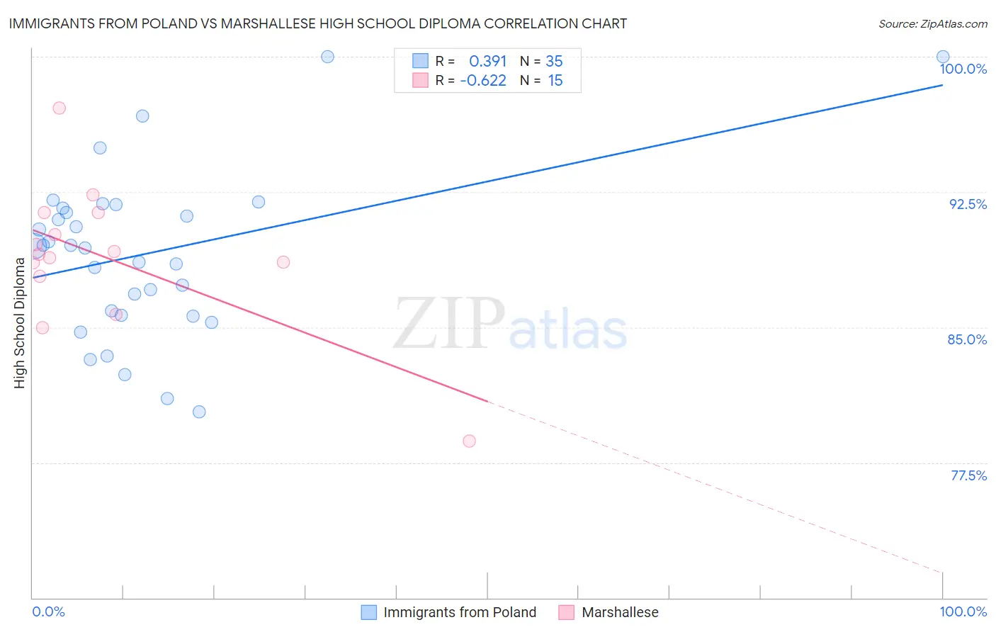 Immigrants from Poland vs Marshallese High School Diploma Correlation Chart