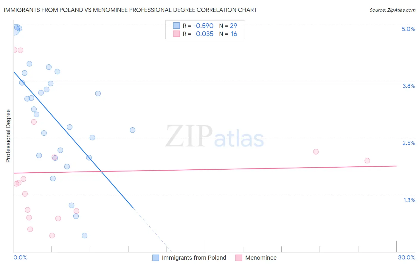 Immigrants from Poland vs Menominee Professional Degree Correlation Chart