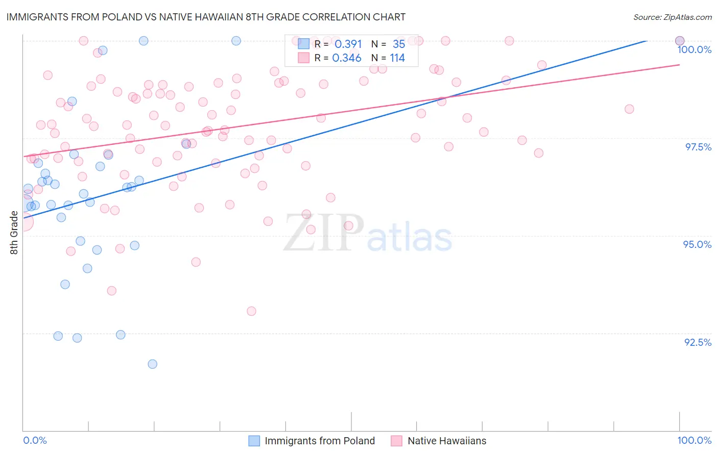 Immigrants from Poland vs Native Hawaiian 8th Grade Correlation Chart