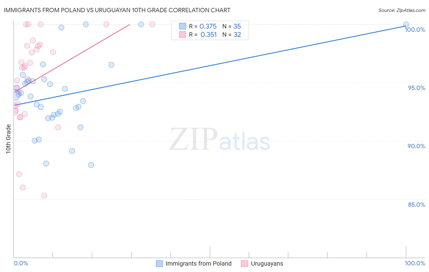 Immigrants from Poland vs Uruguayan 10th Grade Correlation Chart