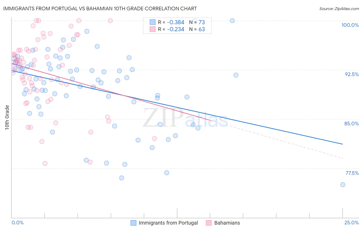 Immigrants from Portugal vs Bahamian 10th Grade Correlation Chart