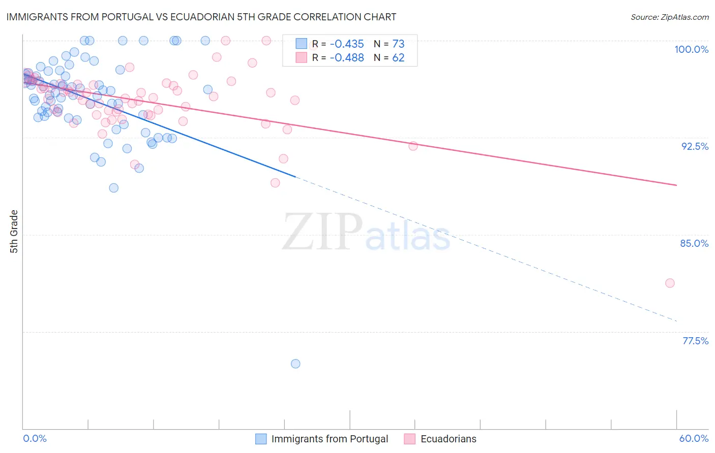 Immigrants from Portugal vs Ecuadorian 5th Grade Correlation Chart