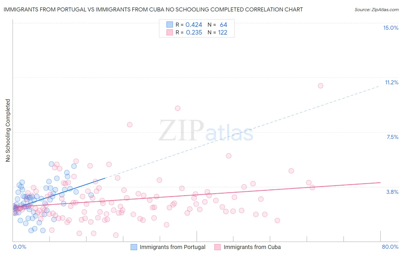 Immigrants from Portugal vs Immigrants from Cuba No Schooling Completed Correlation Chart