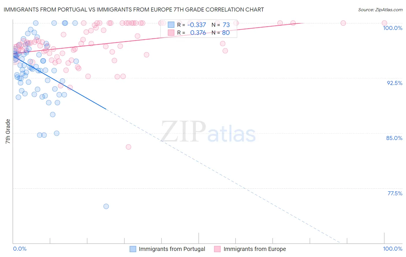 Immigrants from Portugal vs Immigrants from Europe 7th Grade Correlation Chart