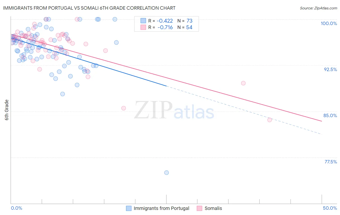 Immigrants from Portugal vs Somali 6th Grade Correlation Chart