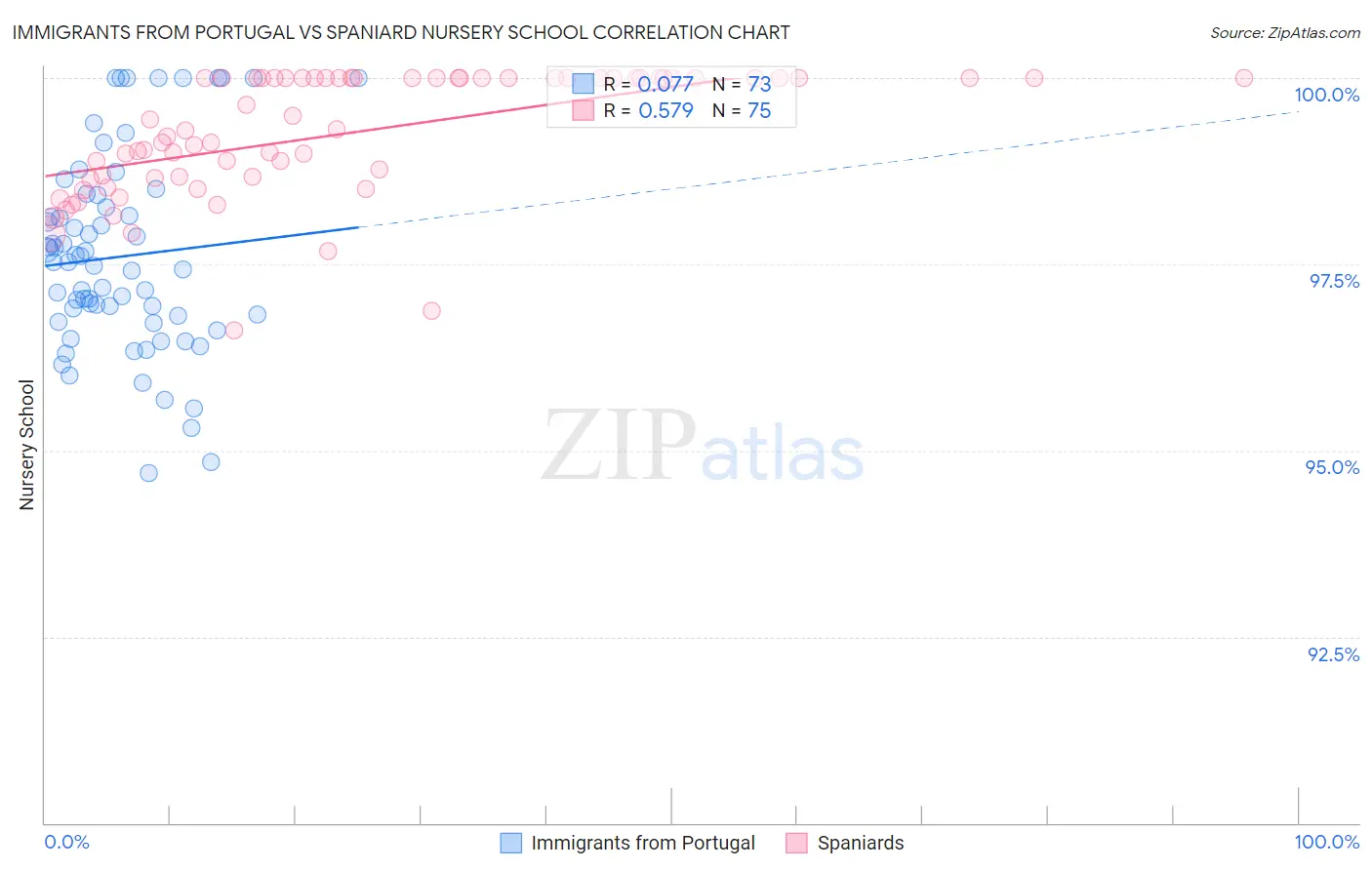 Immigrants from Portugal vs Spaniard Nursery School Correlation Chart