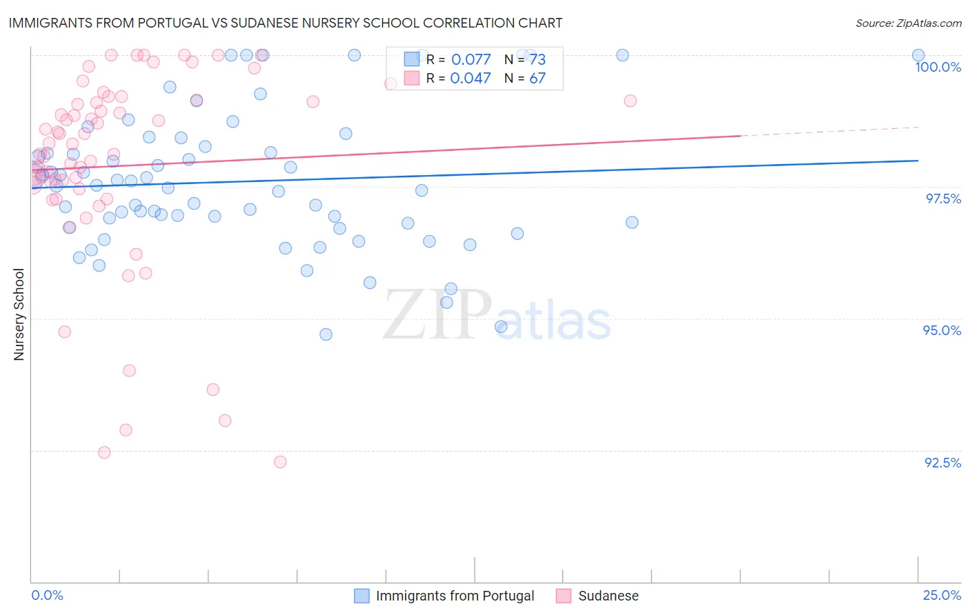 Immigrants from Portugal vs Sudanese Nursery School Correlation Chart