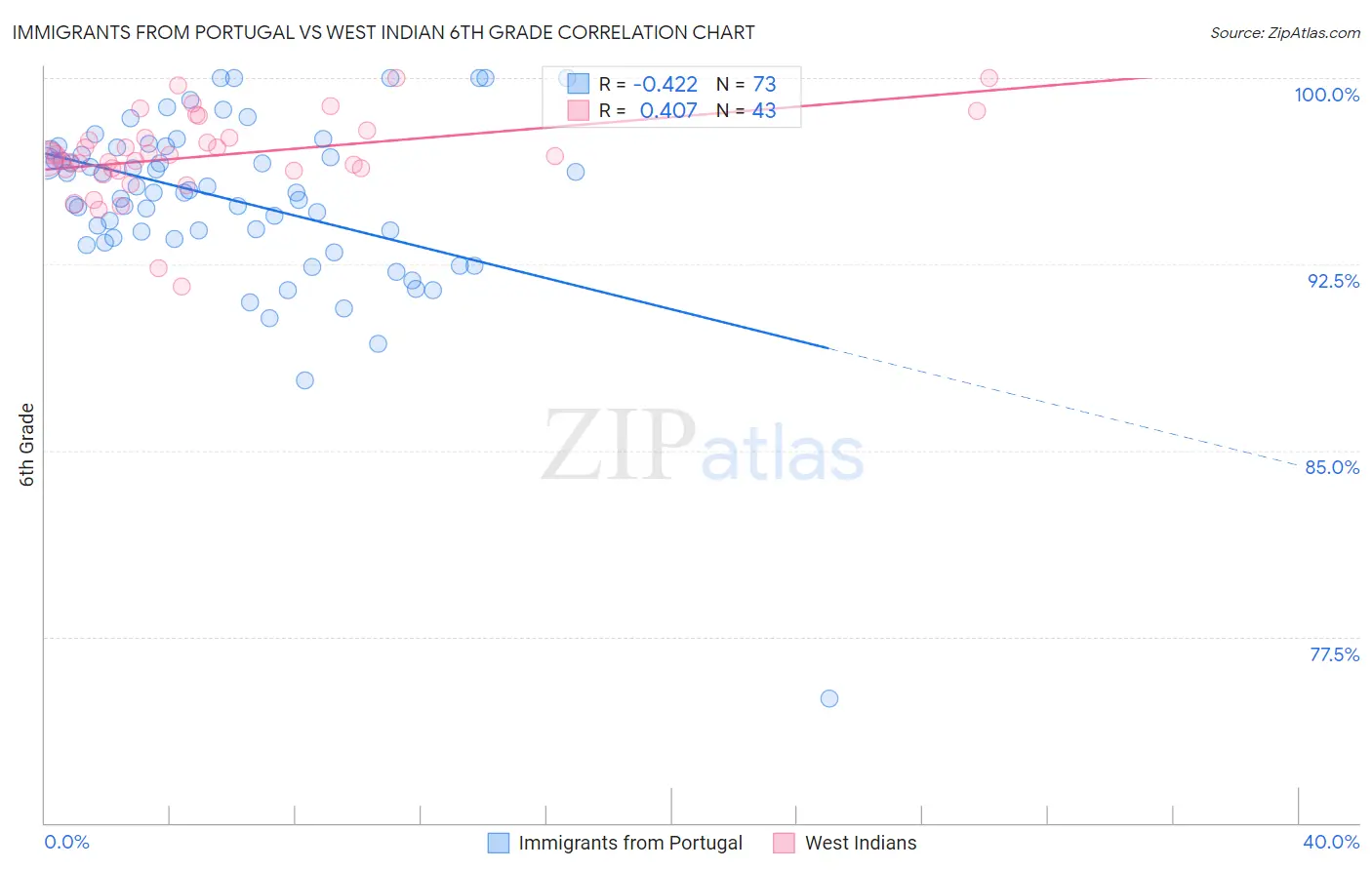 Immigrants from Portugal vs West Indian 6th Grade Correlation Chart
