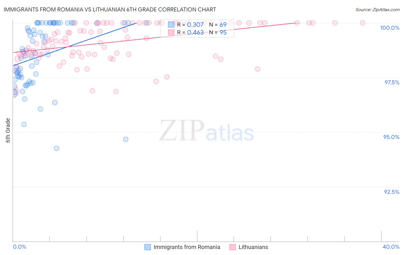 Immigrants from Romania vs Lithuanian 6th Grade Correlation Chart