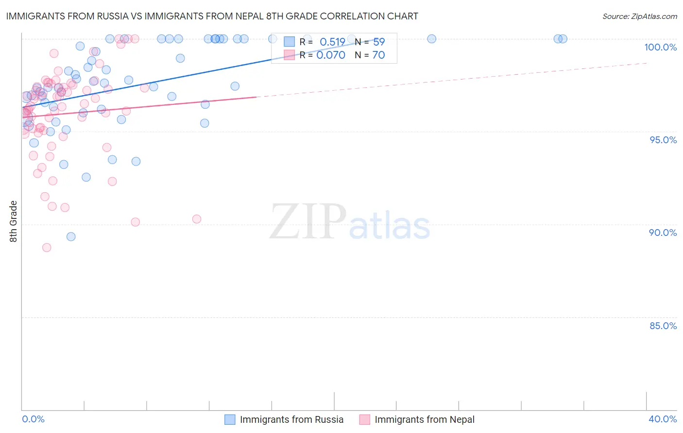 Immigrants from Russia vs Immigrants from Nepal 8th Grade Correlation Chart