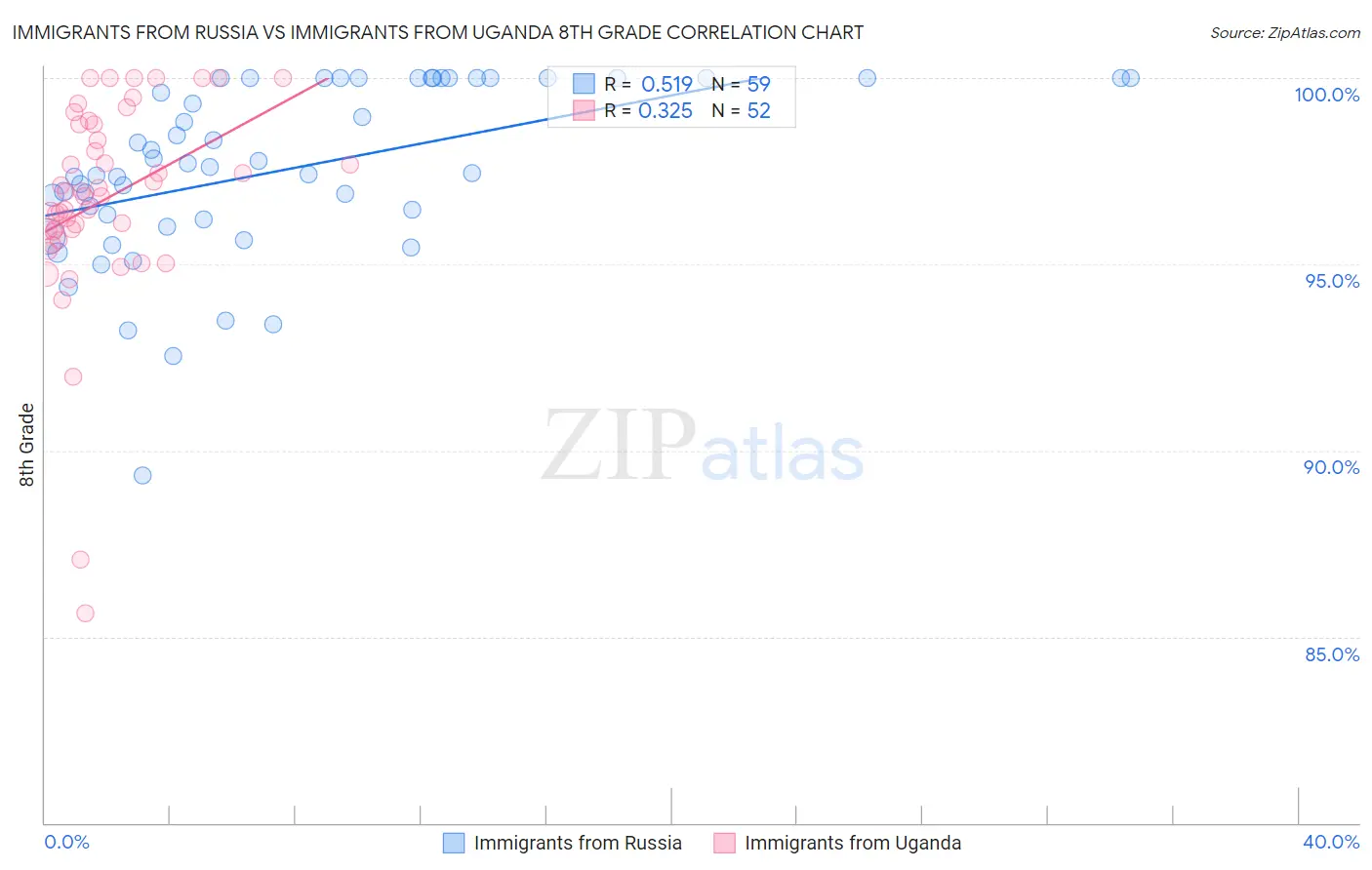Immigrants from Russia vs Immigrants from Uganda 8th Grade Correlation Chart