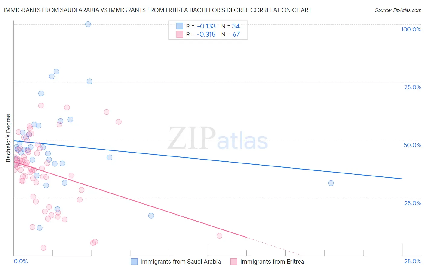 Immigrants from Saudi Arabia vs Immigrants from Eritrea Bachelor's Degree