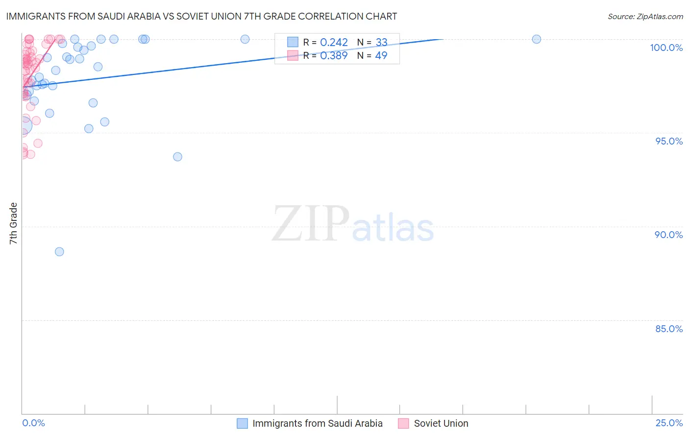 Immigrants from Saudi Arabia vs Soviet Union 7th Grade Correlation Chart
