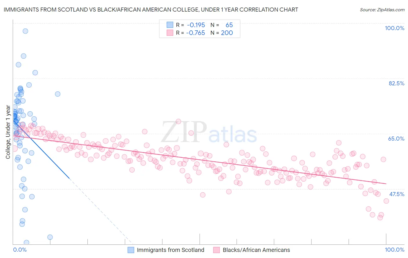Immigrants from Scotland vs Black/African American College, Under 1 year Correlation Chart
