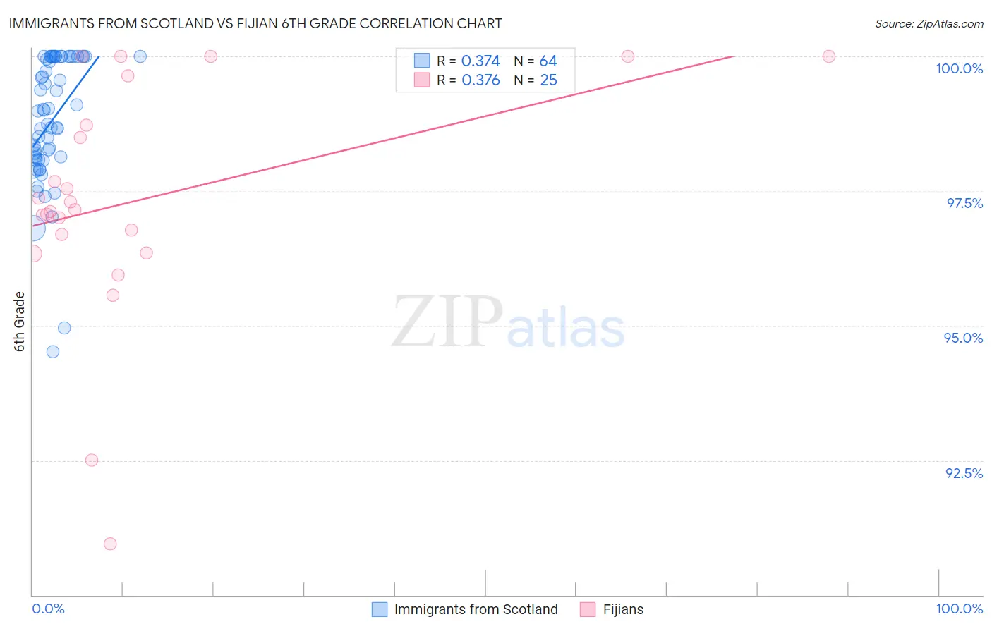 Immigrants from Scotland vs Fijian 6th Grade Correlation Chart