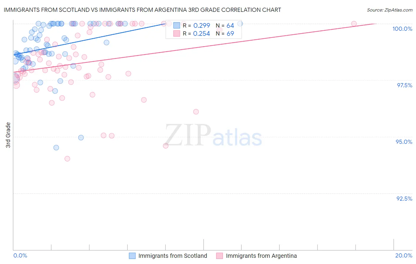 Immigrants from Scotland vs Immigrants from Argentina 3rd Grade Correlation Chart
