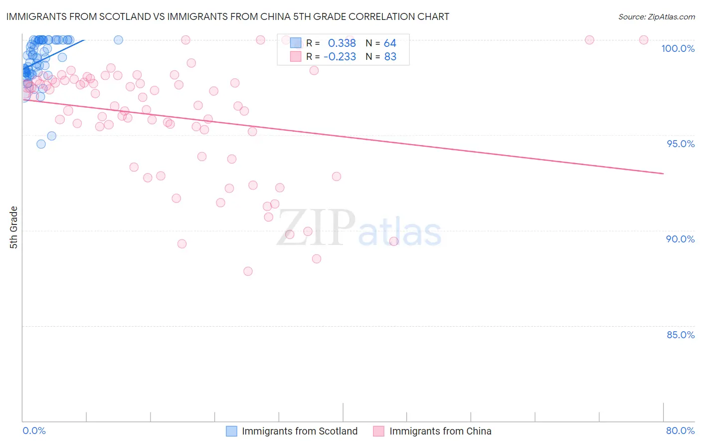 Immigrants from Scotland vs Immigrants from China 5th Grade Correlation Chart