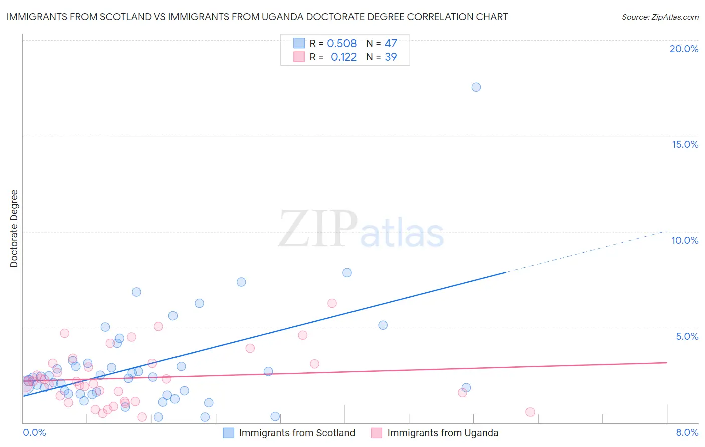 Immigrants from Scotland vs Immigrants from Uganda Doctorate Degree Correlation Chart